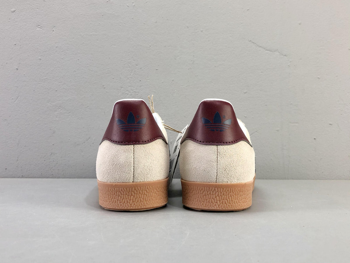 The adidas Gazelle Beige Dark Blue Collegiate Burgundy is a special colorway of the adidas Gazelle, a classic timeless silhouette that has been part of adidas’ lineup since the late 60s when it debuted as a running shoe.