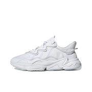 The Adidas Originals Ozweego 'Triple White' showcases the beloved Ozweego silhouette in an all-white colorway, making it a versatile and sleek addition to any sneaker rotation. The Triple White design features a clean upper made from a mix of soft leather, mesh, and suede, complemented by TPU overlays that add texture and structure while keeping the shoe lightweight.