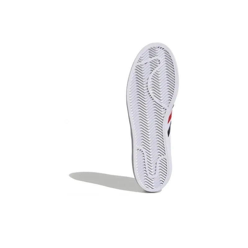 The Adidas Originals Superstar 'White Scarlet' brings a vibrant twist to the classic Superstar design. Featuring a clean white leather upper, the shoe is contrasted by Scarlet red accents on the tongue, heel tab, and iconic three stripes on the side, making it a bold yet timeless style choice.