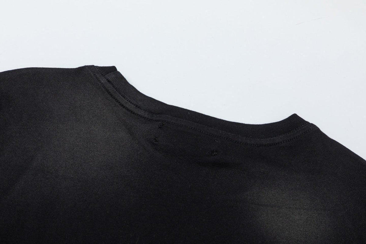 The Amiri T-Shirt Without Collar offers a sleek, contemporary look with a touch of edgy sophistication. Made from premium, soft cotton, this collarless tee features a minimalist design with bold graphic prints or subtle branding, reflecting Amiri's signature rock-inspired aesthetic. With its relaxed fit and high-quality craftsmanship, this T-shirt is perfect for elevating casual outfits, delivering both comfort and style for those who appreciate luxury streetwear.