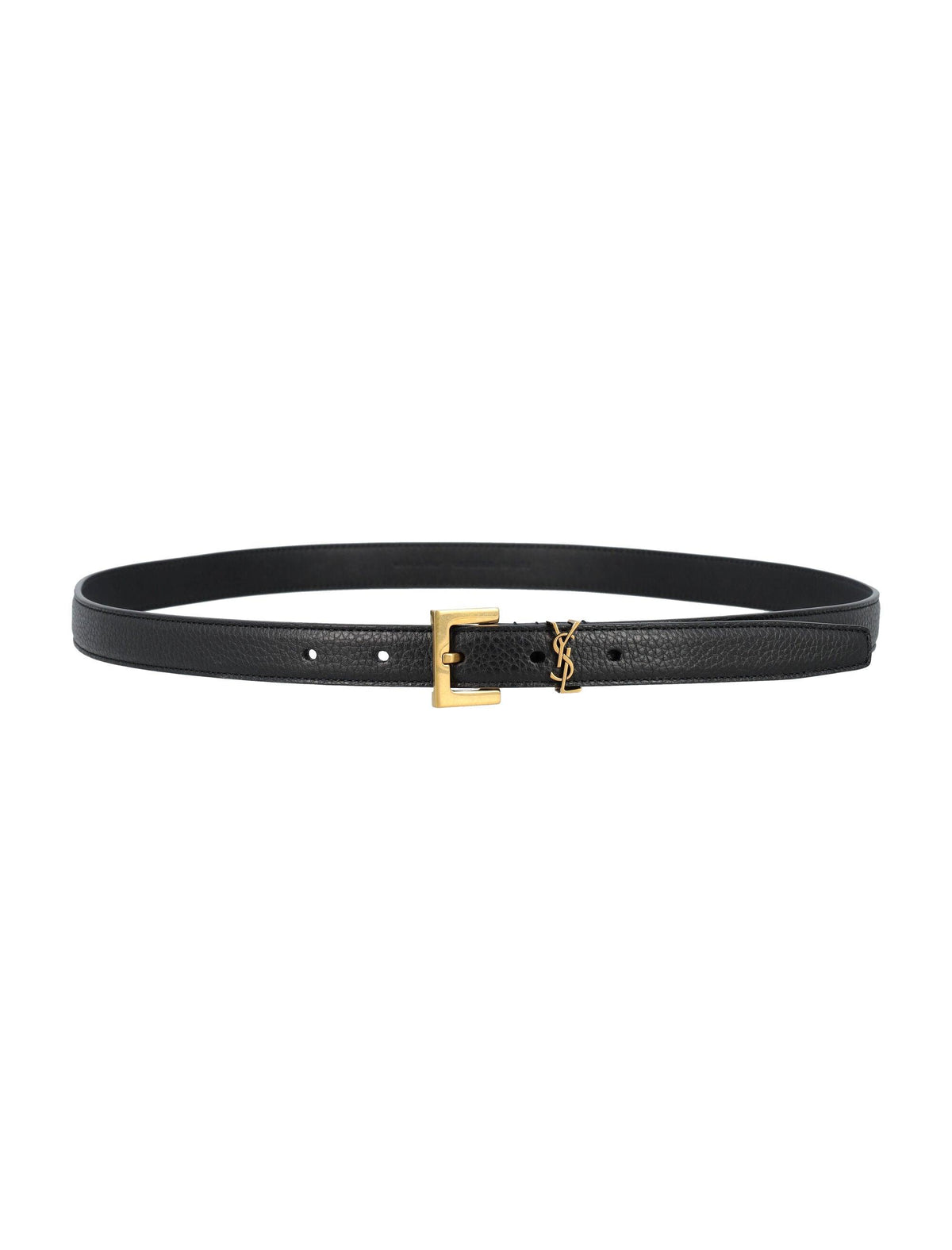 Inform when this item available SAINT LAURENT Grained Leather Thin Belt with Square Buckle